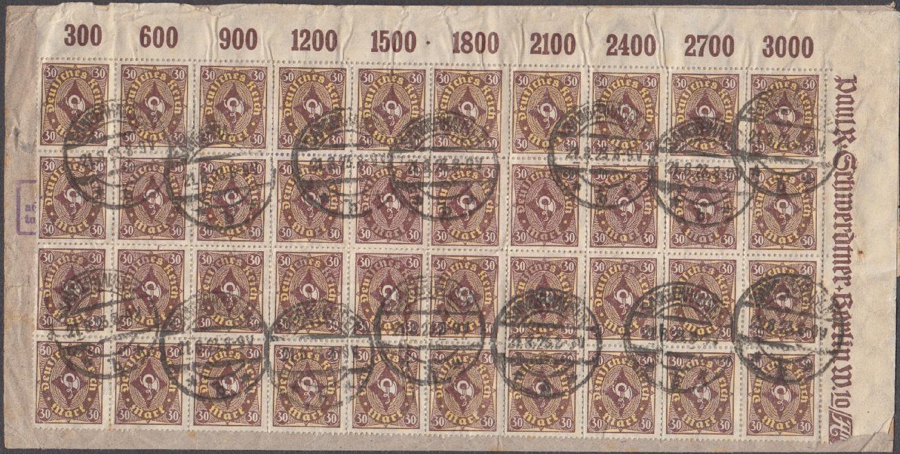 Beschreibung: Drucksachenschleife der 2. Gewichtsstufe mit 40mal Mi-Nr. 208 P vom Oberrand