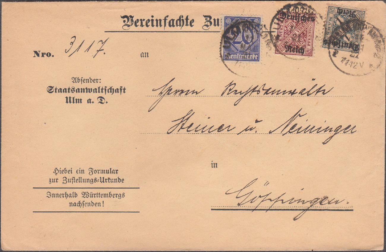 Beschreibung: Fernbrief mit Zustellungsurkunde, frankiert mit D 26, D 63 und D 64
